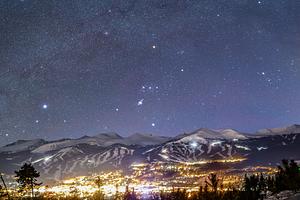 The town light s and sow cats of Breckenridge rush about under the beautiful winter night sky